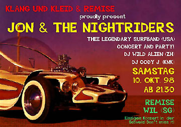 Am Samstag, 10.10.1998 spielten in der Remise, Wil (CH) die Men from Spectre! Sie haben spontan Jon & The Nightriders ersetzt, welche einen Autounfall hatten! Tja... immer diese Autounfälle im Konzertbusiness ;-) Übrigens... Men from Spectre waren cool. Unbedingt anschauen gehen, wenn sie mal irgendwo in der Nähe spielen!